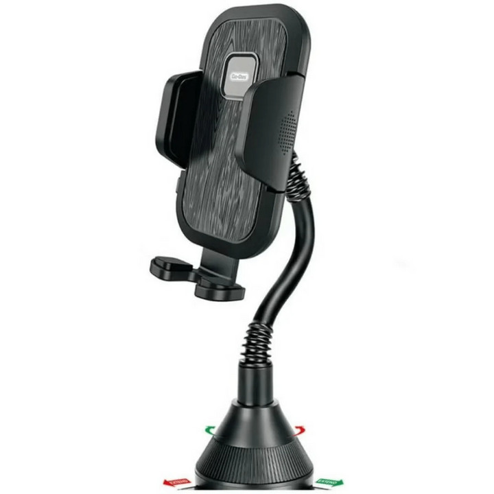 Designed to fit most smartphones, the Go-Des Cup Mount Holder features a one-hand quick release mechanism, anti-slip grips, and a strong base for a secure and convenient driving experience.
